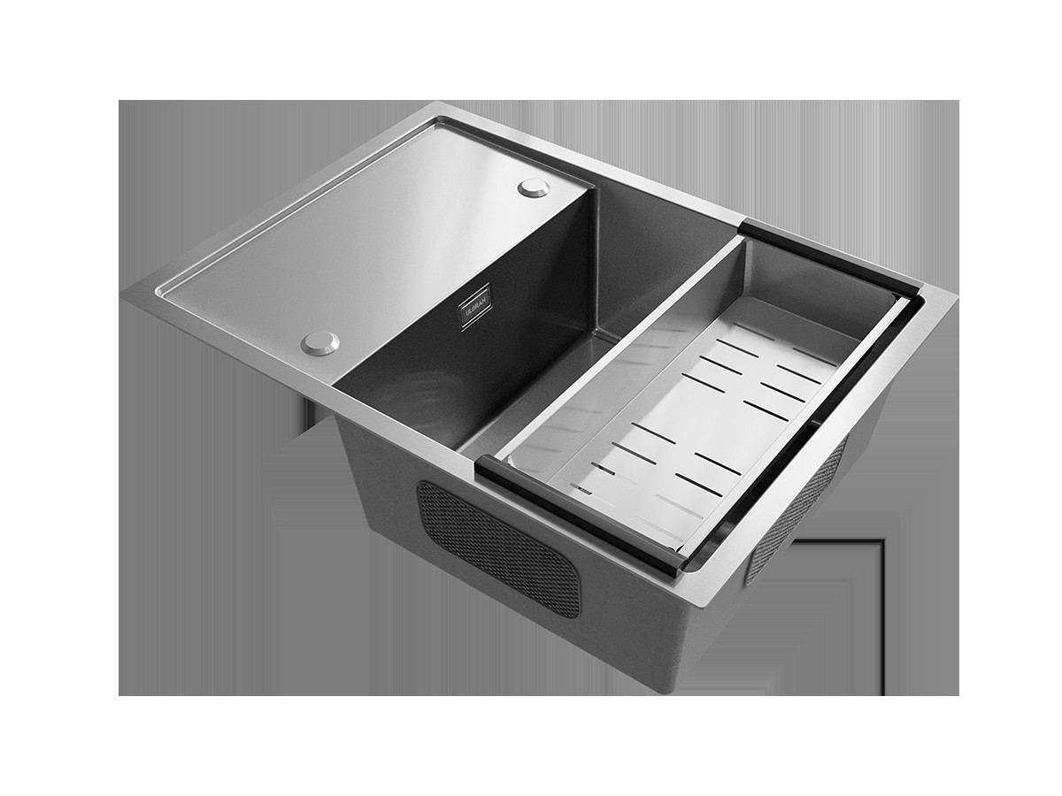 Установка мойки осуществляется врезным способом на столешницу, при этом минимальная ширина мебельной базы шкафа должна составлять 600 мм. Вся поверхность изделия покрыта износостойким PVD-покрытием, которое защищает от коррозии, ржавчины, механических повреждений и температурных перепадов. Благодаря технологиям «брашинга» и сатинированной полировки мойка устойчива к загрязнениям, сохраняет безупречный внешний вид и легко очищается. Модель выдерживает воздействие кипятка, горячей посуды и резких перепадов температур. Для дополнительного комфорта предусмотрено шумоподавляющее покрытие, включающее резиновую накладку на дне и противошумной состав на тыльной стороне мойки.