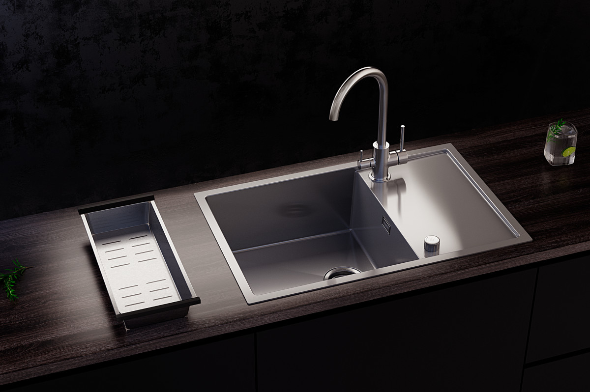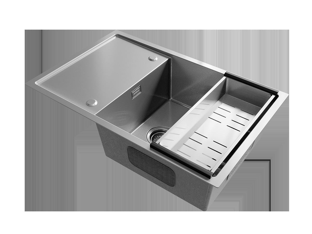 Установка мойки осуществляется врезным способом на столешницу, при этом минимальная ширина мебельной базы шкафа должна составлять 600 мм. Вся поверхность изделия покрыта износостойким PVD-покрытием, которое защищает от коррозии, ржавчины, механических повреждений и температурных перепадов. Благодаря технологиям «брашинга» и сатинированной полировки мойка устойчива к загрязнениям, сохраняет безупречный внешний вид и легко очищается. Модель выдерживает воздействие кипятка, горячей посуды и резких перепадов температур. Для дополнительного комфорта предусмотрено шумоподавляющее покрытие, включающее резиновую накладку на дне и противошумной состав на тыльной стороне мойки.