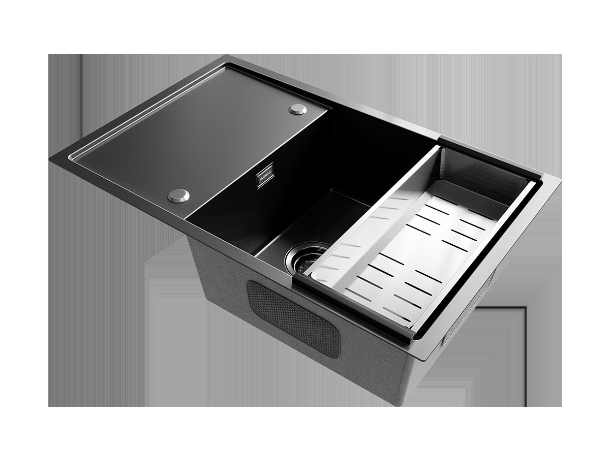 Установка мойки осуществляется врезным способом на столешницу, при этом минимальная ширина мебельной базы шкафа должна составлять 600 мм. Вся поверхность изделия покрыта износостойким PVD-покрытием, которое защищает от коррозии, ржавчины, механических повреждений и температурных перепадов. Благодаря технологиям «брашинга» и сатинированной полировки мойка устойчива к загрязнениям, сохраняет безупречный внешний вид и легко очищается. Модель выдерживает воздействие кипятка, горячей посуды и резких перепадов температур. Для дополнительного комфорта предусмотрено шумоподавляющее покрытие, включающее резиновую накладку на дне и противошумной состав на тыльной стороне мойки.