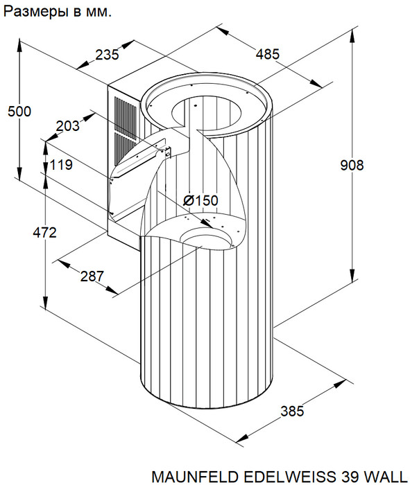 Кухонная вытяжка цилиндрическая MAUNFELD EDELWEISS 39 WALL чёрный антрацит