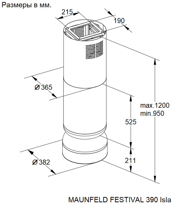 Адаптивность: Телескопическая конструкция позволяет регулировать высоту от 950 до 1200 мм для оптимального размещения. Подключение к воздуховоду Ø150 мм.