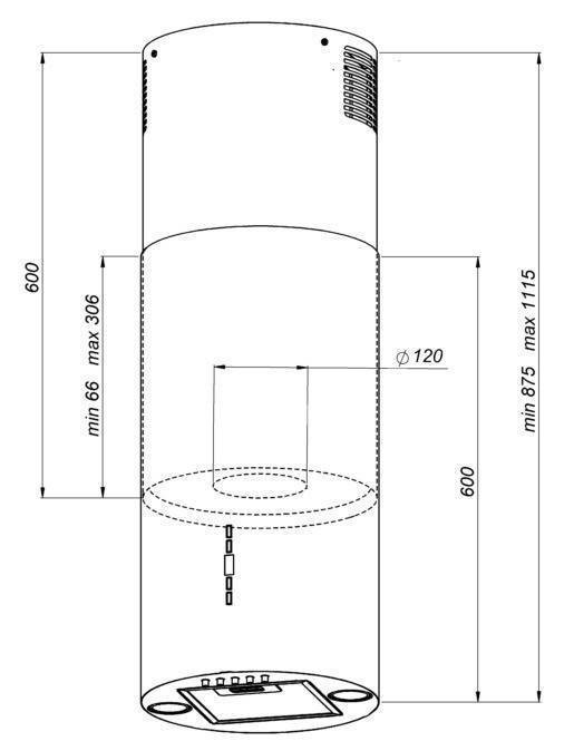 Вытяжка состоит из одной части, имеет два выхода для воздуховода - вертикальный и горизонтальный
