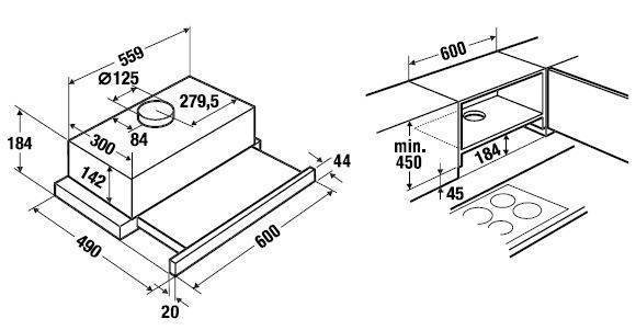 Размеры ниши для встраивания (Ш х В x Г): 600 х 450 x 300 мм