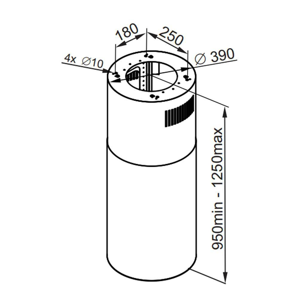 Корпус цилиндрической формы, выполненный из нержавеющей стали, крепится на потолок над поверхностью плиты. В нижней части вытяжки находится алюминиевый многослойный жироулавливающий фильтр. Он легко вынимается и полностью разбирается, что сильно упрощает чистку.