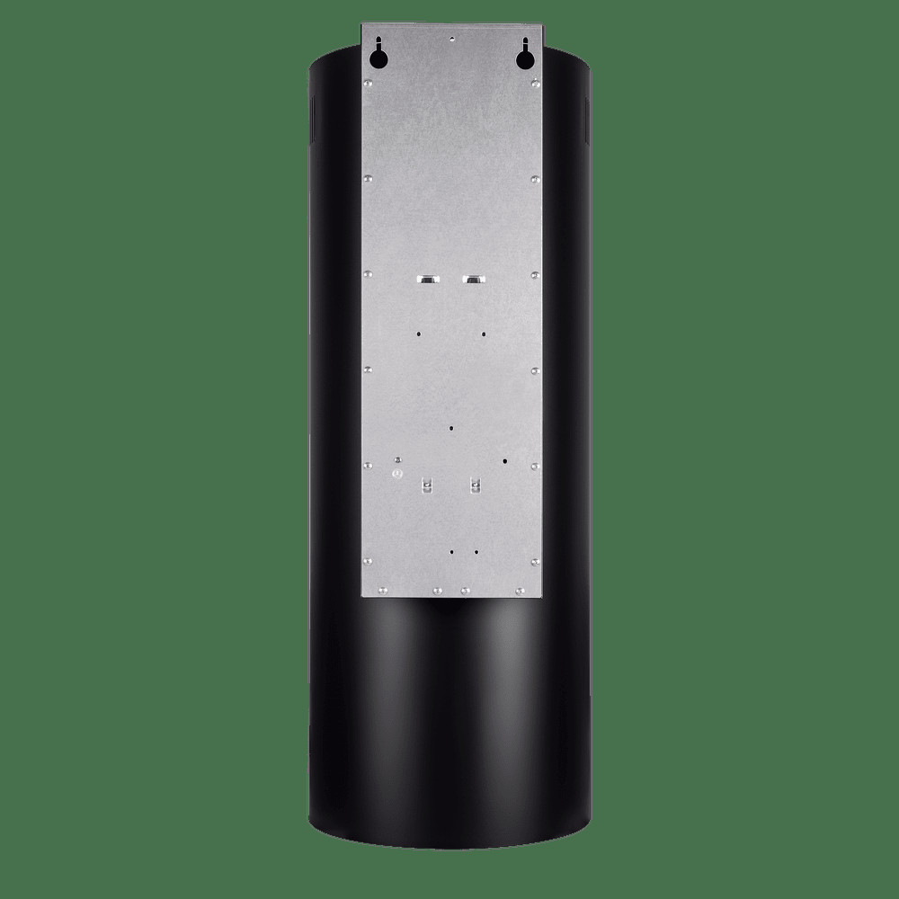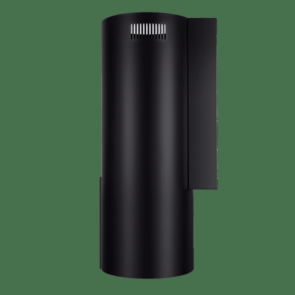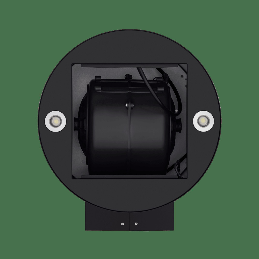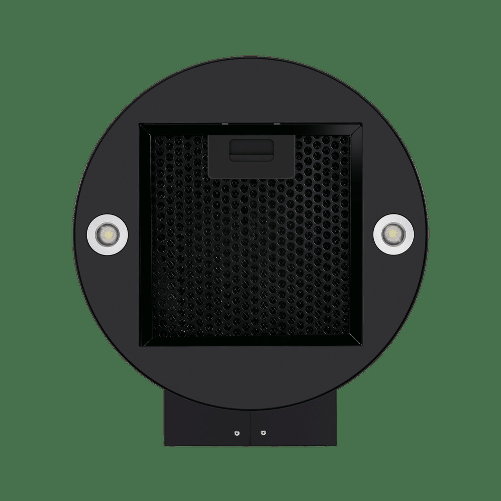 Корпус цилиндрической формы, сделанный из нержавеющей стали с термостойким покрытием, монтируется на стену над варочной поверхностью. Специальный многослойный жироулавливающий алюминиевый фильтр, расположенный в нижнем торце, легко снимается и полностью разбирается, что сильно упрощает его чистку.