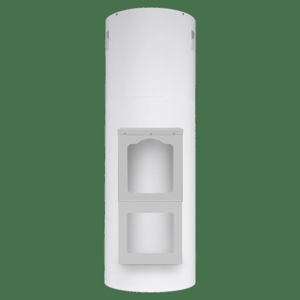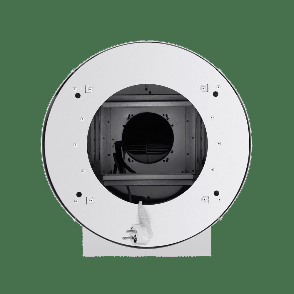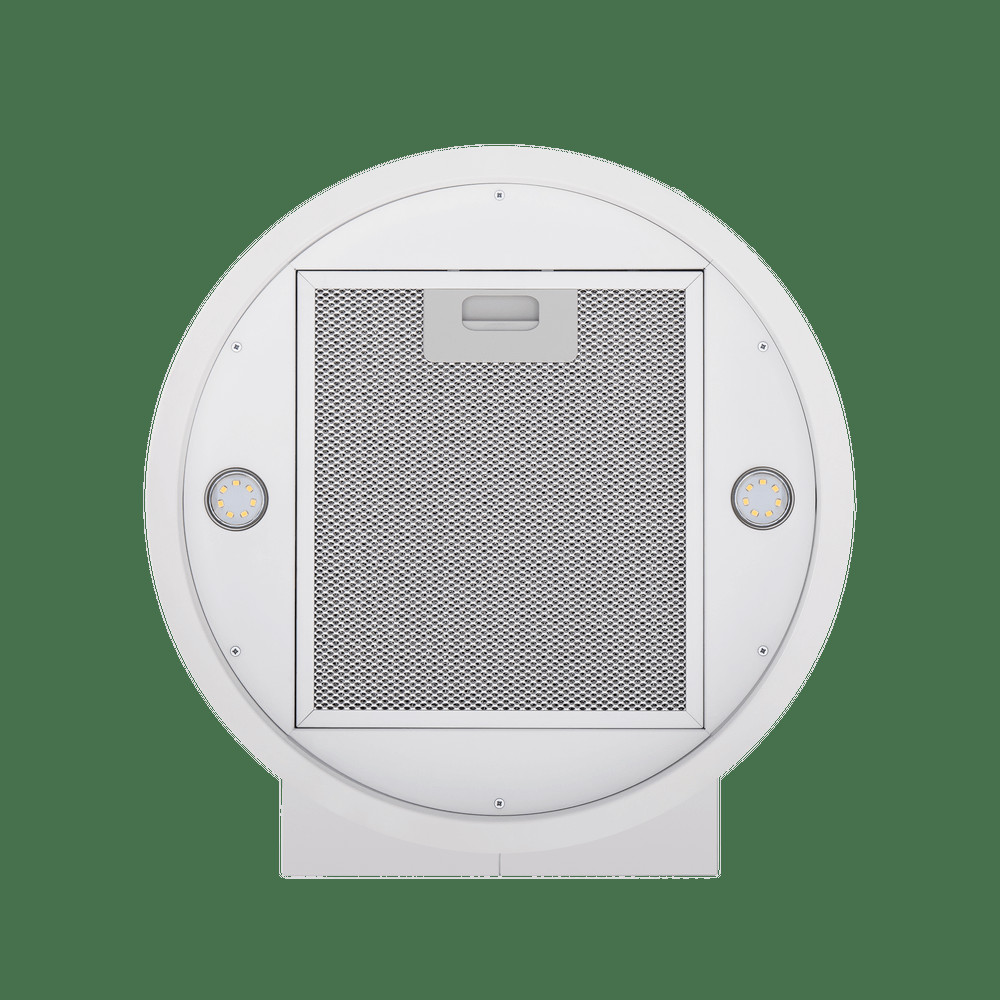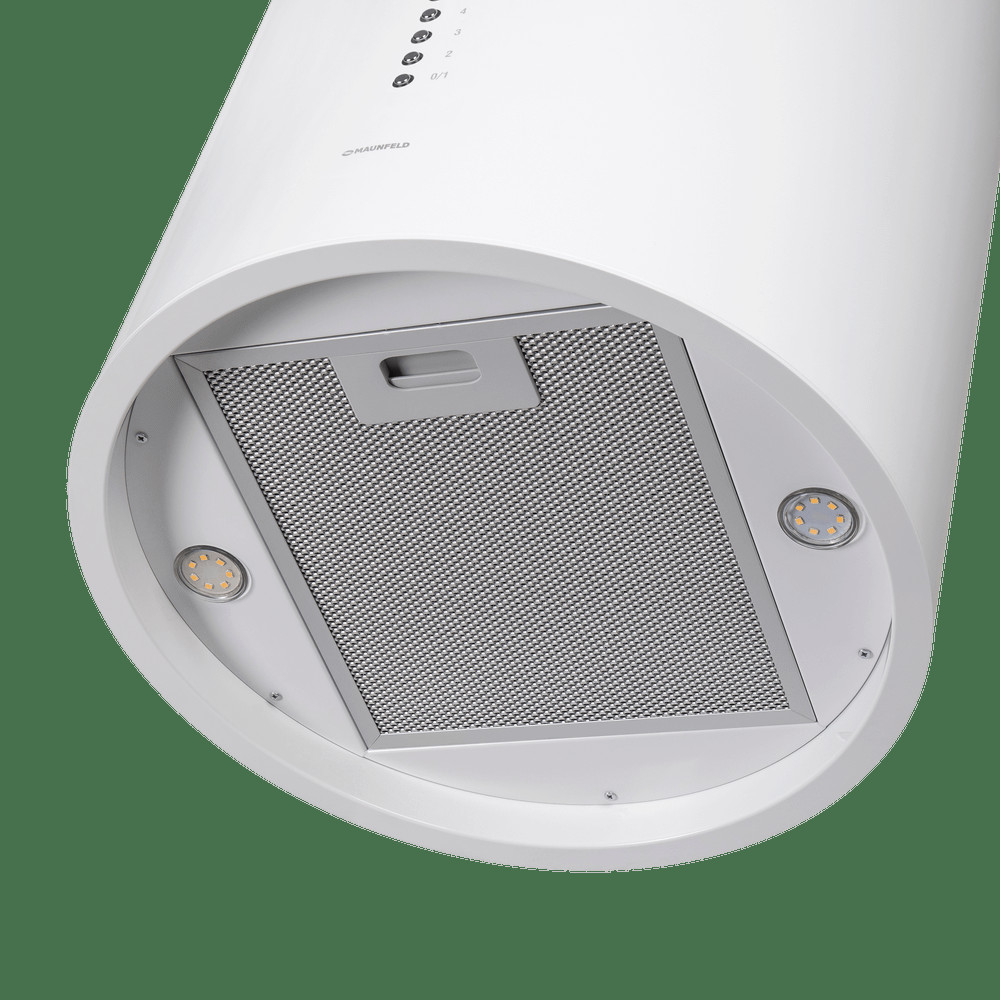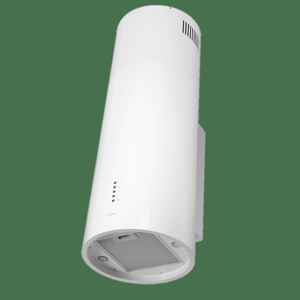 Корпус цилиндрической формы, сделанный из нержавеющей стали с термостойким покрытием, монтируется на стену над варочной поверхностью. Специальный многослойный жироулавливающий алюминиевый фильтр, расположенный в нижнем торце, легко снимается и полностью разбирается, что сильно упрощает его чистку.