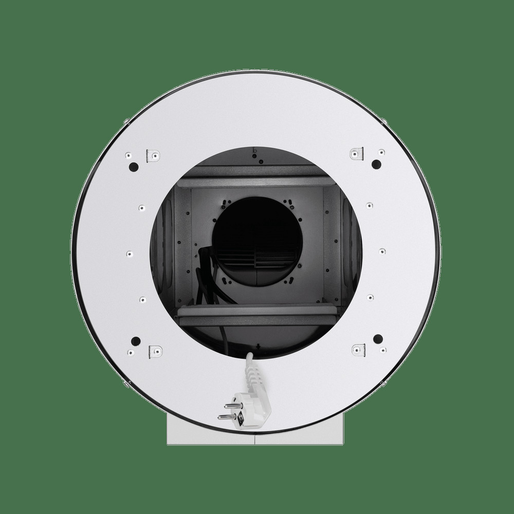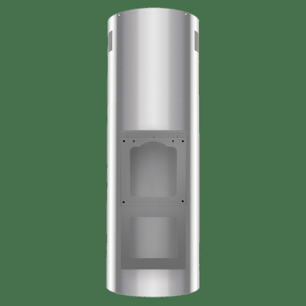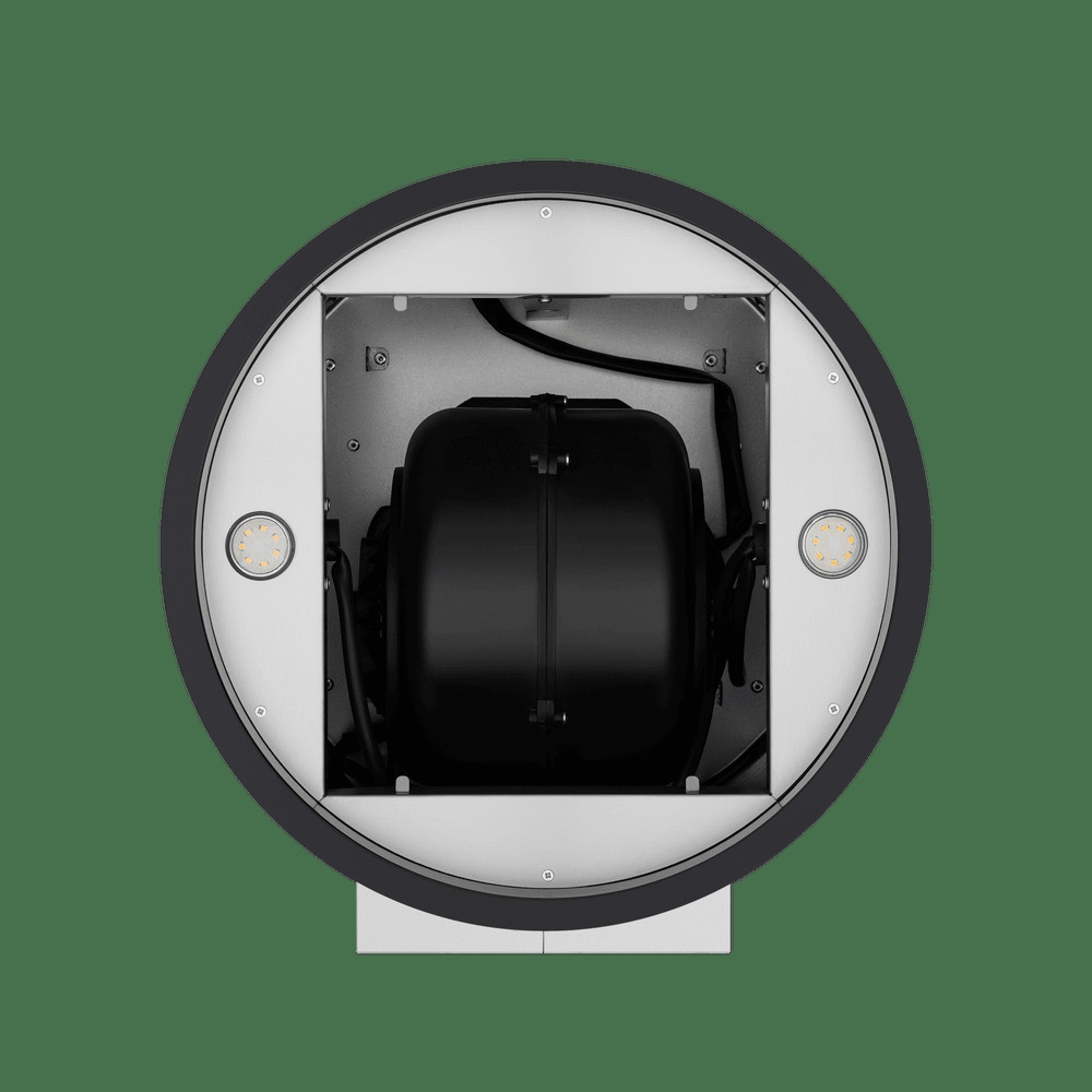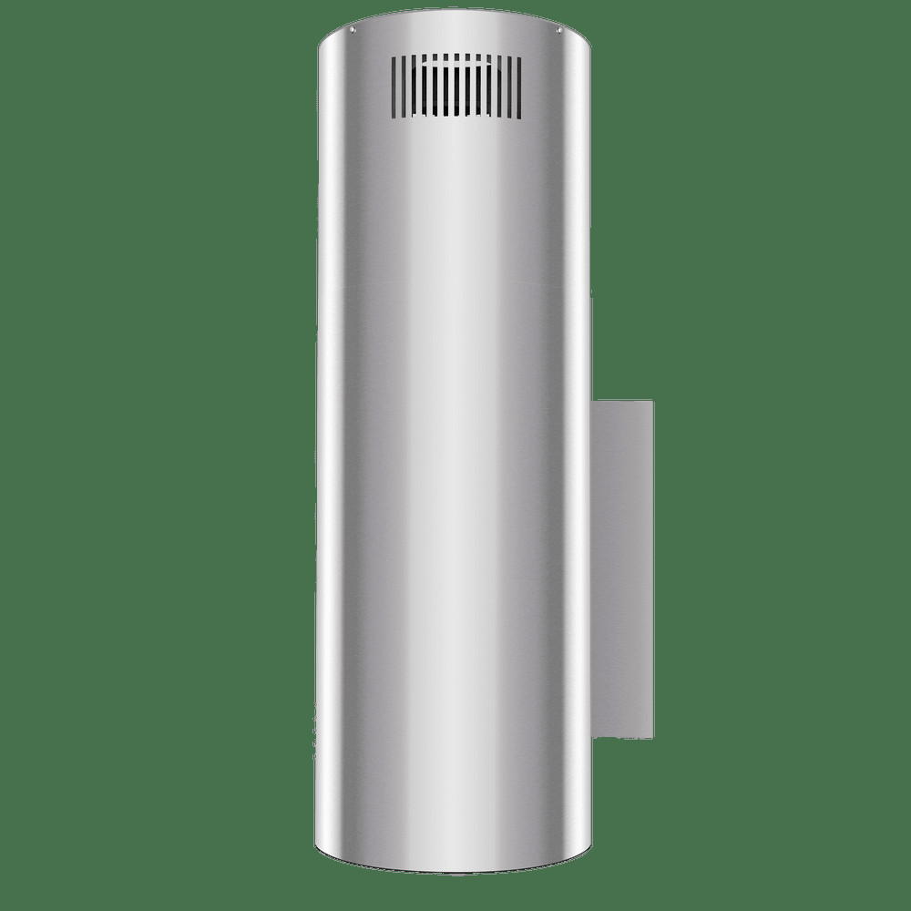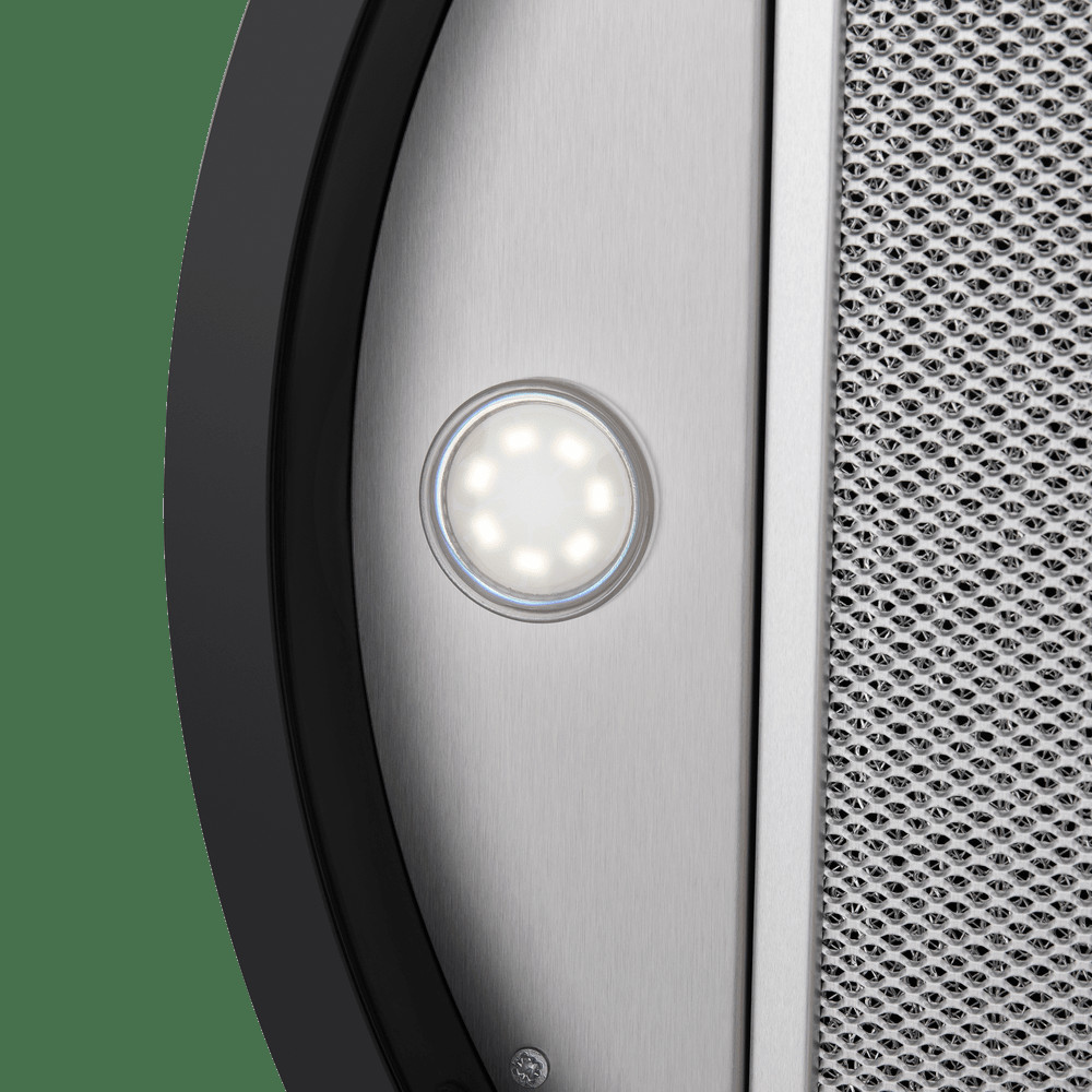 Корпус цилиндрической формы, сделанный из нержавеющей стали с термостойким покрытием, монтируется на стену над варочной поверхностью. Специальный многослойный жироулавливающий алюминиевый фильтр, расположенный в нижнем торце, легко снимается и полностью разбирается, что сильно упрощает его чистку.