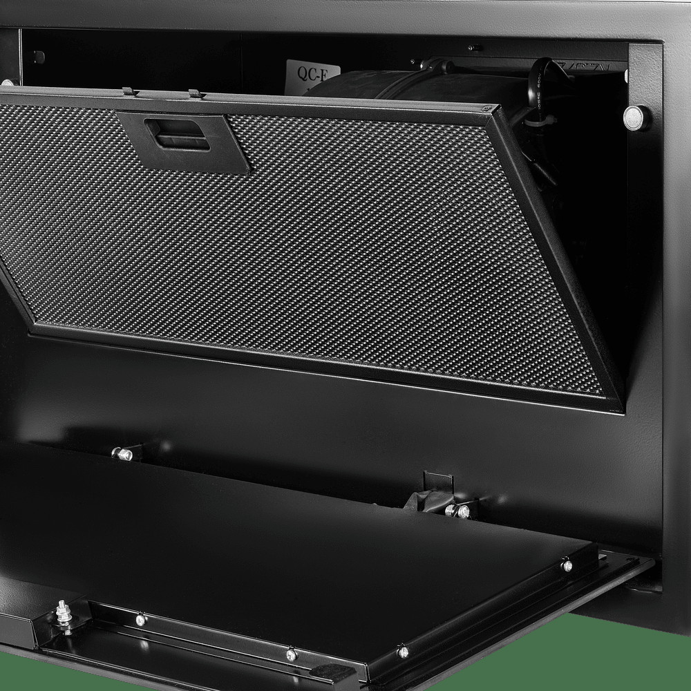 Работа вытяжки контролируется двумя способами: при помощи пульта или жестами. Инновационная система управления жестом позволяет полностью контролировать устройство движением руки. Всего 3 жеста достаточно для того, чтобы вытяжка полностью выполняла свои функции! Можно выбрать один из 4-х режимов работы и включить LED освещение.