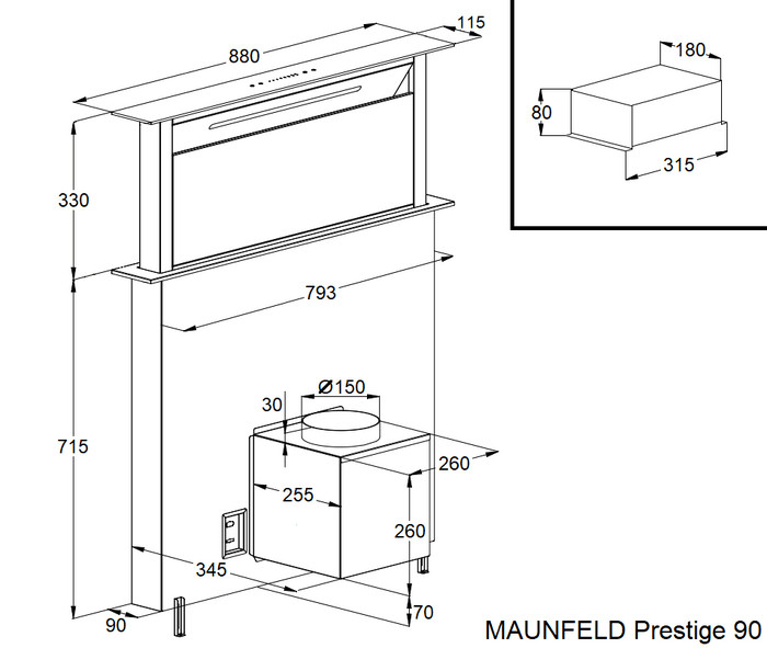 Кухонная вытяжка MAUNFELD Prestige 90 нержавеющая сталь