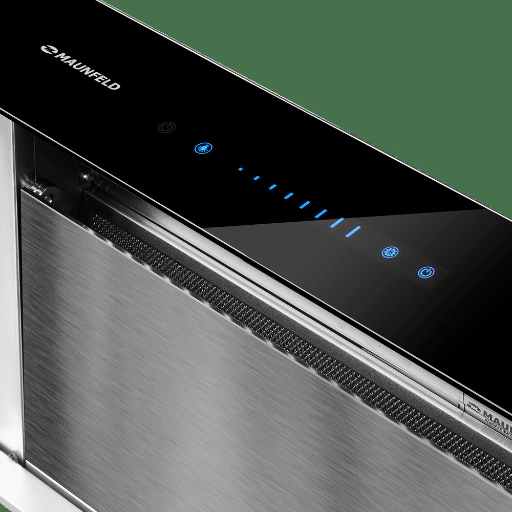 Функциональность изделия сделает вашу кухню более комфортной и уютной, позволяя регулировать интенсивность воздушных потоков. По окончании работы изделие снова скроется в столешнице.