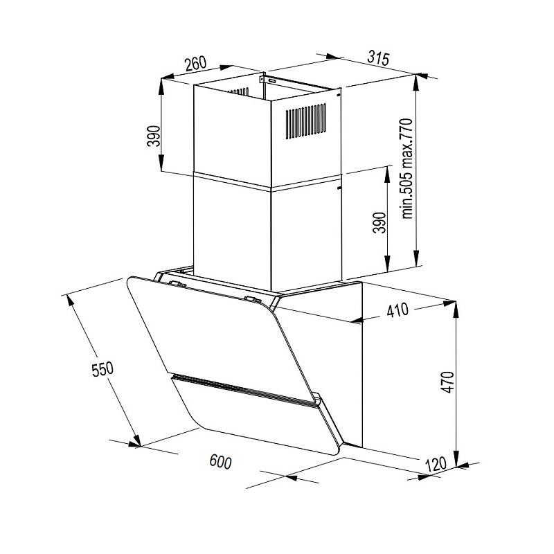 Следует учитывать, что размеры вытяжки должны соответствовать размерам рабочей поверхности, над которой она устанавливается. Вытяжка будет работать эффективно лишь при условии, что ее воздухоприемный зонт полностью закрывает плоскость варочной поверхности. Вытяжка, размером 60 сантиметров это идеальное решение для варочных поверхностей шириной 60 и 45 см.