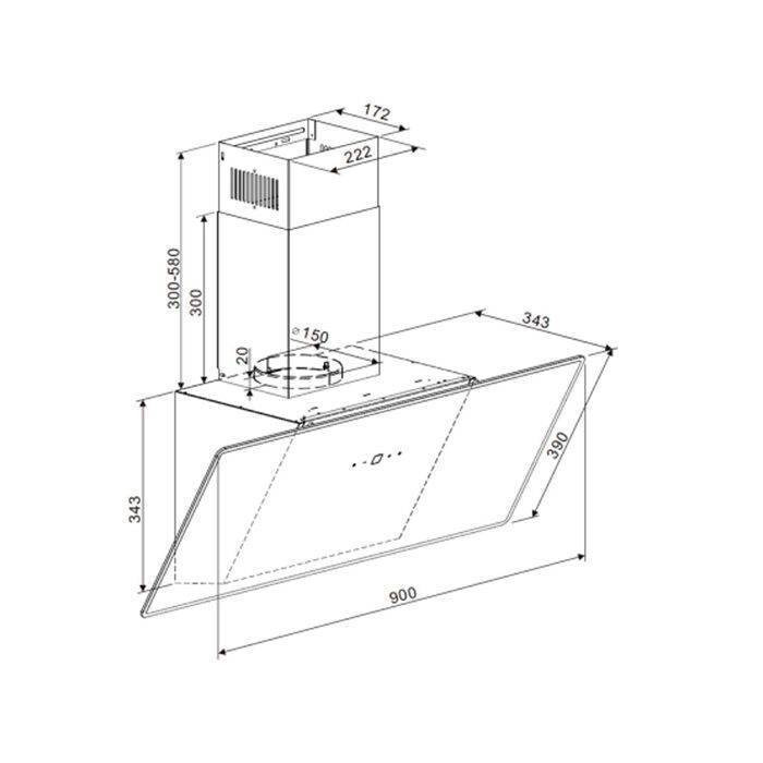 Наклонная форма вытяжки обеспечивает оптимальное распределение воздуха и эффективное удаление запахов. Ширина вытяжки составляет 90 см, что позволяет ей гармонично вписаться в любой интерьер.