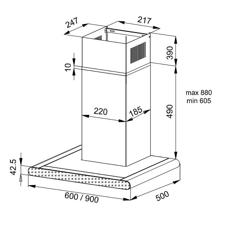 Габариты (ВхШхГ) (мм): 590-1180х900х500