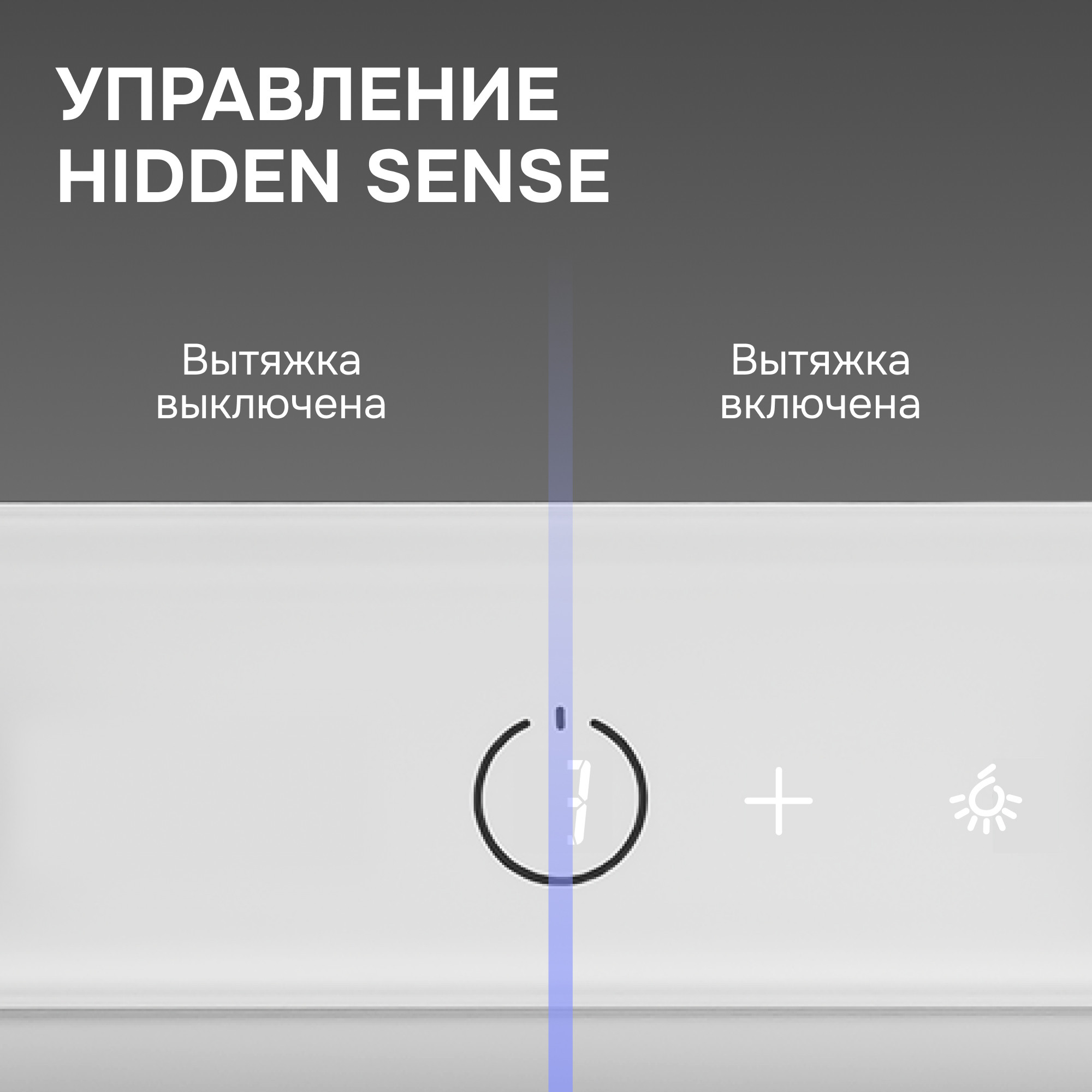 Настроить скорость работы вытяжки можно с помощью удобно расположенного и интуитивно понятного управления сенсорными кнопками или жестами. Сенсорное управление Hidden Sense полностью скрыто, когда вытяжка выключена.