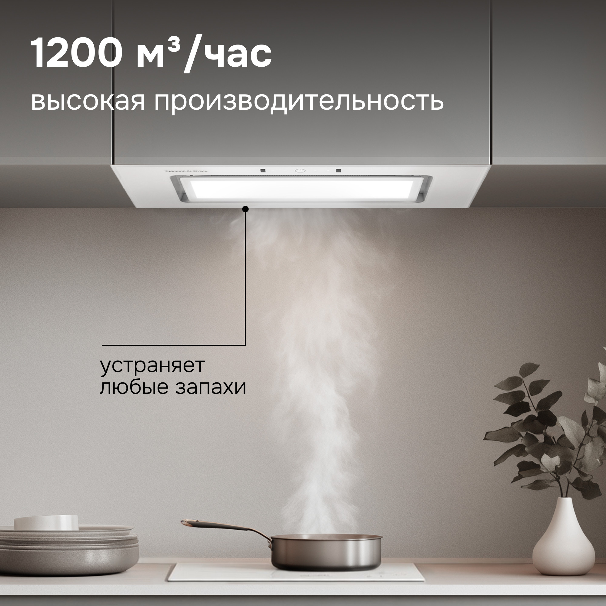 Высокая производительность 1200 м³/час рассчитана на работу в любом типовом помещении кухни.