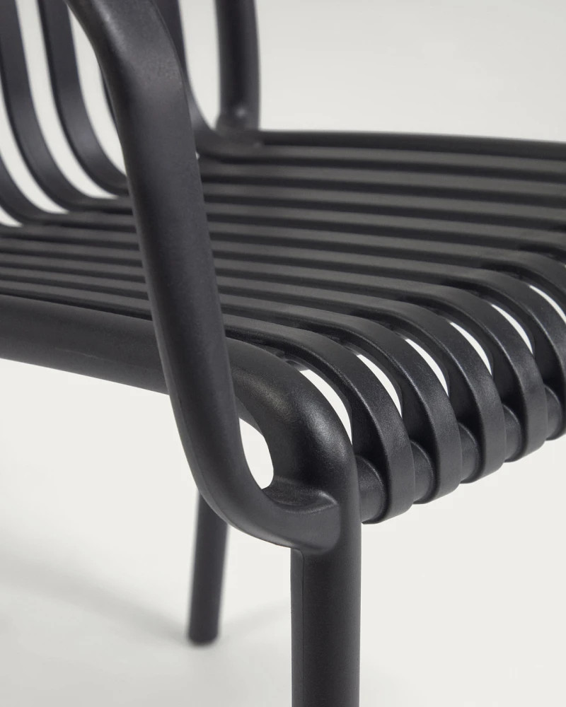 Продуманная эргономика позволяет использовать лавку как в интерьере, так и на улице. Она устойчива, износостойка и визуально лёгкая. Благодаря открытой конструкции, модель не задерживает влагу, не боится перепадов температуры, а порошковое покрытие защищает металл от коррозии. Цвет можно выбрать по каталогу RAL Classic с вариантами текстуры.