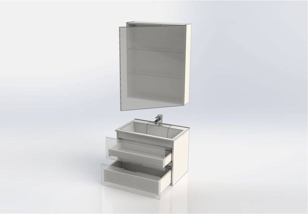 Мебельный гарнитур Акванет Алвита придаст интерьеру ванной комнаты нотку особого очарования и уникальности, благодаря своей нестандартной красивой отделке. Покрытие имеет высокие эксплуатационные характеристики, в частности влагонепроницаемость, прочность и простоту в уходе. Современный дизайн демонстрирует аккуратный минимализм геометрически четких форм, где основная идея подчинена максимальной функциональности. Вместительная тумба с верхним и нижним выдвижными ящиками и зеркало-шкафчик с полками за распашной дверцей создают дополнительное пространство, где будут надежно скрыты от влаги банные принадлежности, а все необходимое при умывании и принятии ванны теперь будет у вас под рукой. Ящики тумбы закрываются легко и бесшумно, благодаря механизму доводчика. Раковина «Фортуна» имеет уникальную конструкцию слива: вместо привычного расположения по центру, он находится в скрытом отсеке под съемной крышкой. Смещение слива и сифона к стене, в сторону канализационного отвода, избавляет от необходимости менять устройство верхнего ящика тумбы и делать в нем выемку. Теперь он свободно передвигается под раковиной и имеет большую вместимость. При желании гарнитур можно укомплектовать навесным пеналом в том же стиле, расширив зону хранения ванной комнаты.