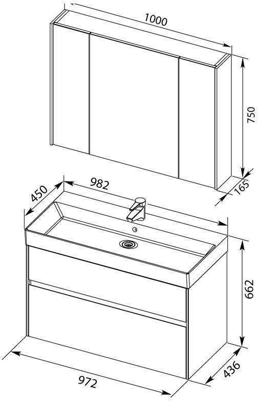 Комплект мебели для ванной Aquanet Бруклин 100 состоит из подвесной тумбы с раковиной и зеркального шкафа - все белого цвета В комплекте соединились модели из разных коллекций: тумба "Бруклин" шириной 100 см и зеркальный шкаф "Латина" шириной 100 см Корпус изделия выполнен из выкрашенного белой краской влагостойкого ЛДСП, фасады – из МДФ В тумбе интегрированные ручки, когда открывание происходит за счет выступающей детали верхней или нижней части фасада, которая срезана под углом, в результате чего образуется выемка, служащая ручкой Раковина из керамики с тонкими изящными бортиками идет размер в размер с тумбой, в результате чего все изделие выглядит как единое целое На контрасте с белизной внешних деталей стильно смотрится корпус выдвижных ящиков, выполненный в цвете «дуб сонома» Нижний ящик тумбы имеет большую зону хранения, верхний разделен на несколько отделений, которые помогут грамотно разложить все необходимое по своим местам