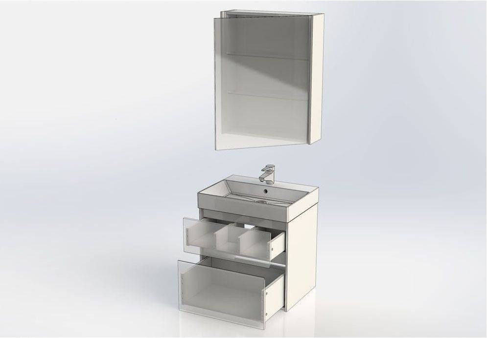 Комплект мебели для ванной Aquanet Бруклин 60 состоит из подвесной тумбы с раковиной и зеркального шкафа - все белого цвета В комплекте соединились модели из разных коллекций: тумба "Бруклин" шириной 60 см и зеркальный шкаф "Латина" шириной 60 см Корпус изделия выполнен из выкрашенного белой краской влагостойкого ЛДСП, фасады – из МДФ В тумбе интегрированные ручки, когда открывание происходит за счет выступающей детали верхней или нижней части фасада, которая срезана под углом, в результате чего образуется выемка, служащая ручкой Раковина из керамики с тонкими изящными бортиками идет размер в размер с тумбой, в результате чего все изделие выглядит как единое целое На контрасте с белизной внешних деталей стильно смотрится корпус выдвижных ящиков, выполненный в цвете «дуб сонома» Нижний ящик тумбы имеет большую зону хранения, верхний разделен на несколько отделений, которые помогут грамотно разложить все необходимое по своим местам
