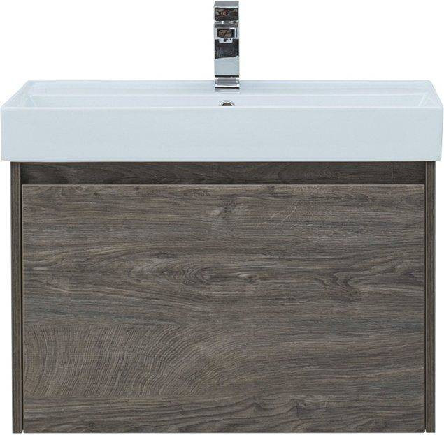 Мебель для ванной Aquanet Nova Lite 75 из влагостойкой ламинированной древесно-стружечной плиты в благородном цвете «дуб рошелье» имеет достойный вид. Фактура натурального дерева выглядит изысканно, а подвесной монтаж придает визуальную легкость тумбе шириной 75 см. Тумба оборудована одним большим ящиком, внутри которого предусмотрен маленький с выемкой для установки сифона и разделителями, где удобно хранить необходимые в ванной комнате мелочи. Фасады выполнены с декоративной интегрированной ручкой, не имеющей острых краев и внутренних углов, что обеспечивает удобство в эксплуатации и легкий уход за мебелью. Ящики комплектуются направляющими немецкого производства Hettich Quadro, оснащенными доводчиками. Неглубокая и стильная керамическая раковина «Латина» идеально подходит к тумбе. Комплект дополняет зеркало с LED-подсветкой по периметру.