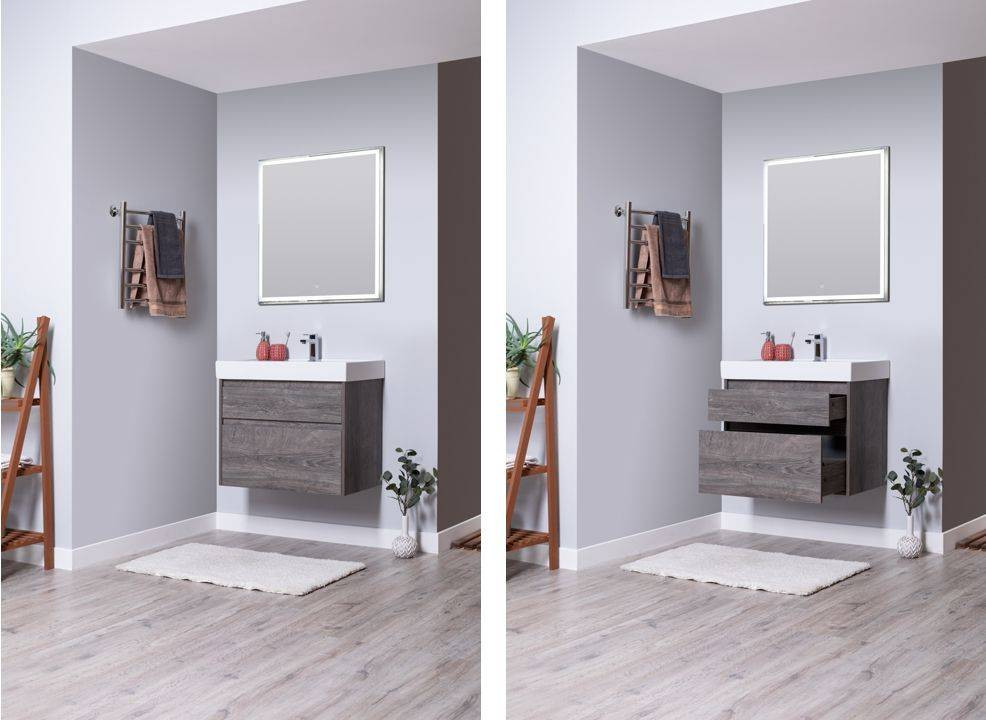 Мебель для ванной Aquanet Nova Lite 75 из влагостойкой ламинированной древесно-стружечной плиты в благородном цвете «дуб рошелье» имеет достойный вид. Фактура натурального дерева выглядит изысканно, а подвесной монтаж придает визуальную легкость тумбе шириной 75 см. Она оборудована двумя выдвижными ящиками. Ящики довольно вместительные и позволяют разместить все необходимое. Фасады выполнены с декоративной интегрированной ручкой, не имеющей острых краев и внутренних углов, что обеспечивает удобство в эксплуатации и легкий уход за мебелью. Ящики комплектуются направляющими немецкого производства Hettich Quadro, оснащенными доводчиками. Неглубокая и стильная керамическая раковина «Латина» идеально подходит к тумбе. Комплект дополняет зеркало с LED-подсветкой по периметру.