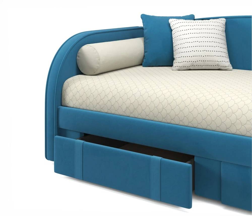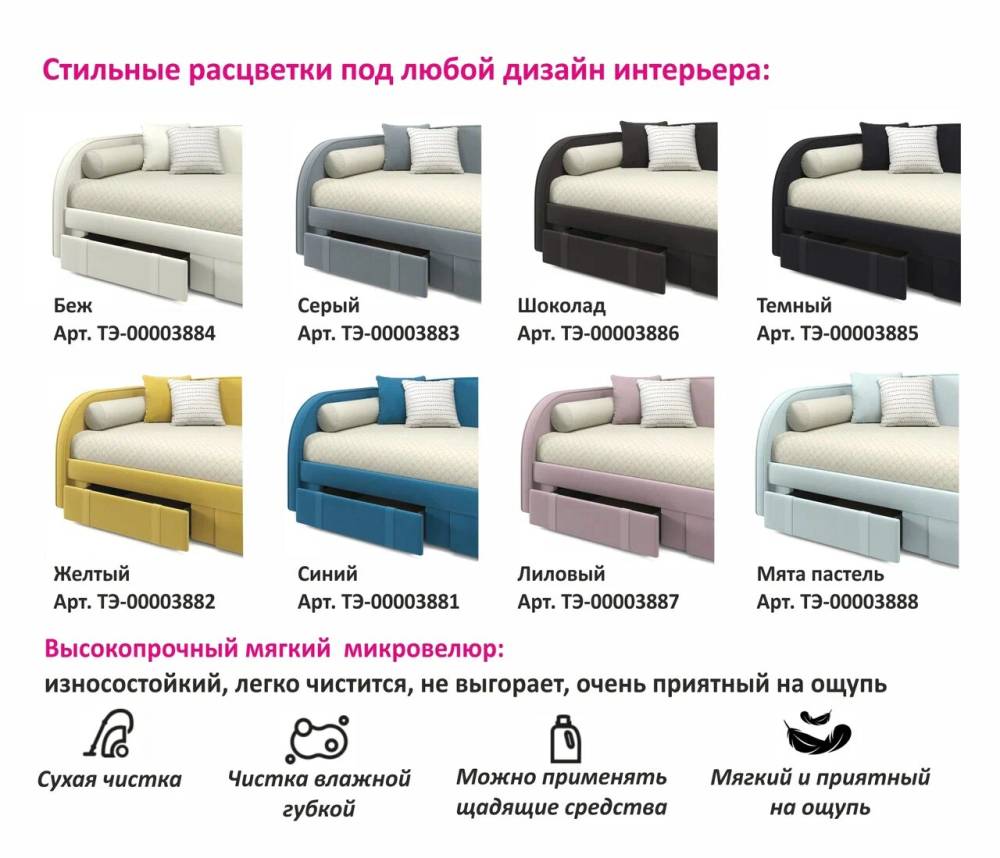 Односпальная кровать Elda 90*200 с тремя мягкими спинками, ящиками и ортопедическим основанием - уникальный предмет мебели, который совмещает в себе полноценную кровать и место для отдыха. Высокое заднее изголовье в форме дуги придает кровати изысканный вид. Все мягкие спинки декорированы рельефным кантом из ткани в тон кровати. Кровать Elda с тремя мягкими спинками выполнена из модной мебельной ткани - велюр. Дорогая ткань велюр придает кровати более величественный и благородный вид. Ткань износостойкая, легко чистится от загрязнений, практичная, эластичная, устойчивая к ультрафиолету.