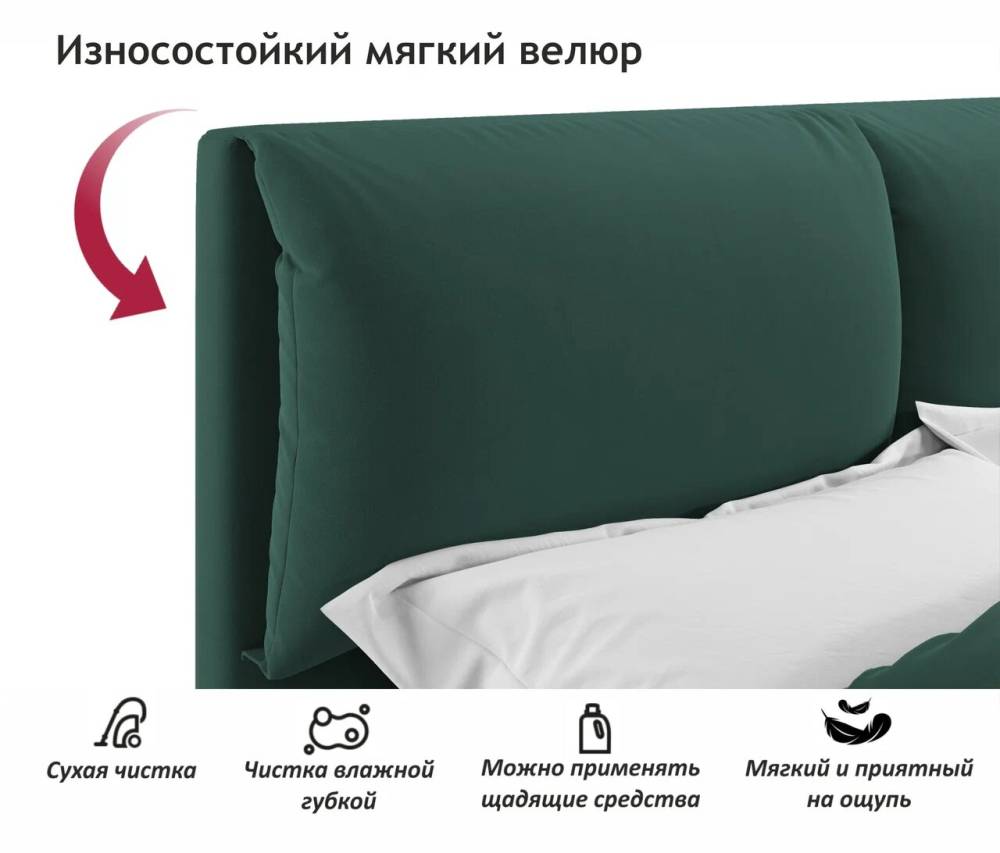 Обивка мягкой спинки и весь периметр 2 спальной кровати выполнен из мебельной ткани – велюр. Это уникальный материал, который получается за счет сплетения пяти волокон одновременно. Дорогая ткань велюр придает кровати более величественный благородный вид. Ткань износостойкая, легко чиститься от загрязнений