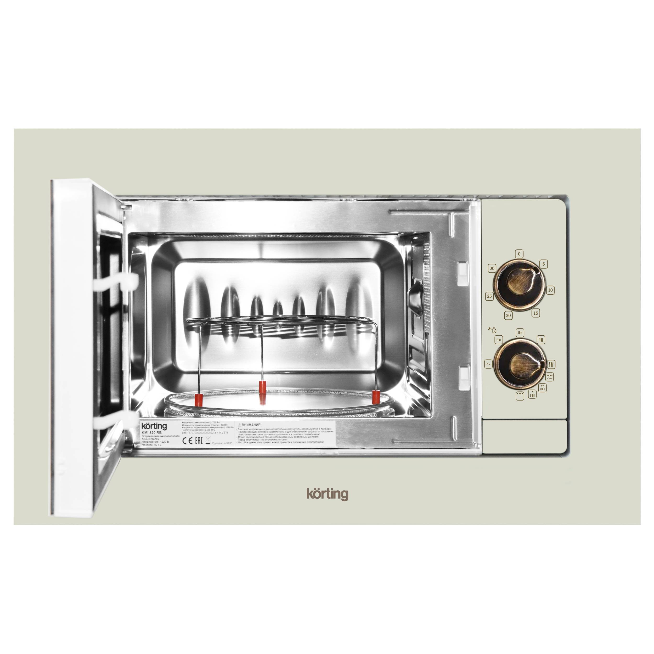 Дизайн ретро моделей микроволновых печей обладают не только одинаковым цветом, но и идентичными аксессуарами вместе с духовыми шкафами своей серии. Теперь в Körting есть полноценный комплект духового шкафа и микроволновой печи в ретро дизайне, который позволяет устанавливать их в кухонной мебели друг под другом.
