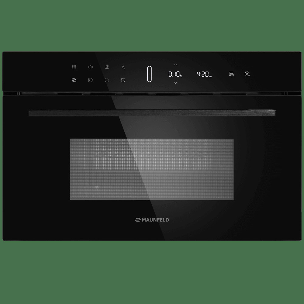 Микроволновая печь Maunfeld с горизонтальной панелью управления органично впишутся в интерьер Вашей кухни. Стеклянная дверца открывается сверху вниз, как в духовых шкафах. Рабочая камера этой печи имеет большой объём 34 л.