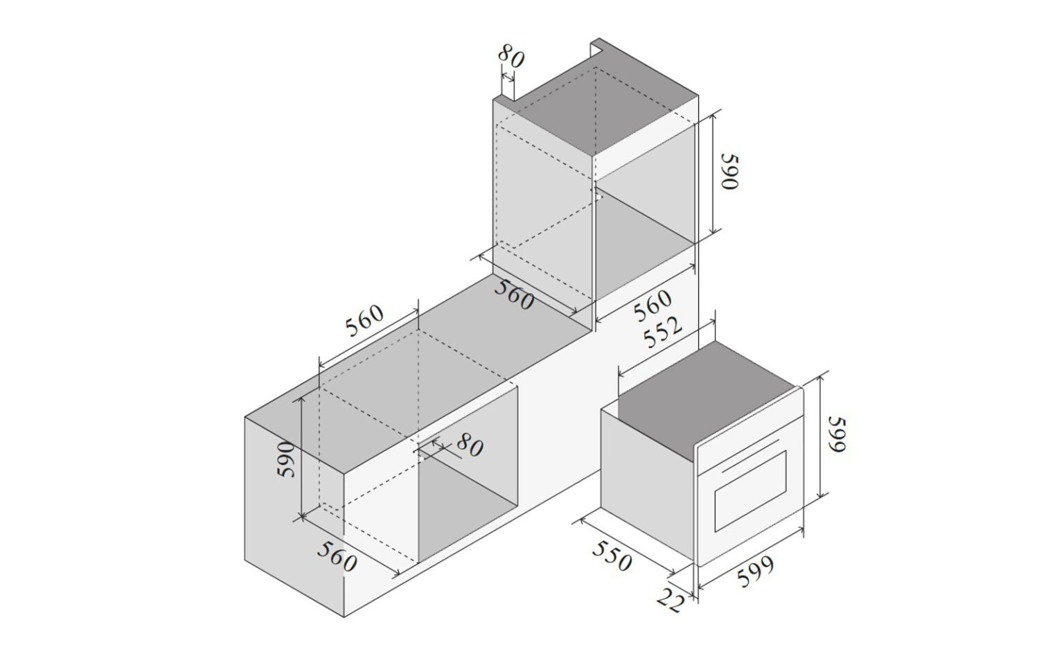 размеры для встраивания: 59 х 56 х 56 см