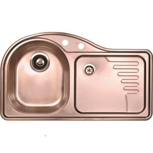 Мойка из пищевой нержавеющей стали марки CrNi18/10 с прочным PVD-покрытием, устойчивой к коррозии и безопасной для пищевых продуктов. Отличная функциональность с просторной глубокой основной чашей и большим крылом. Удобная площадка под смеситель. Сливная арматура из нержавеющей стали с прочным PVD-покрытием под отверстия диаметром 1,5 и 3,5 дюйма и сифон входят в комплект. Клапан-автомат для большой чаши - дополнительный комфорт.