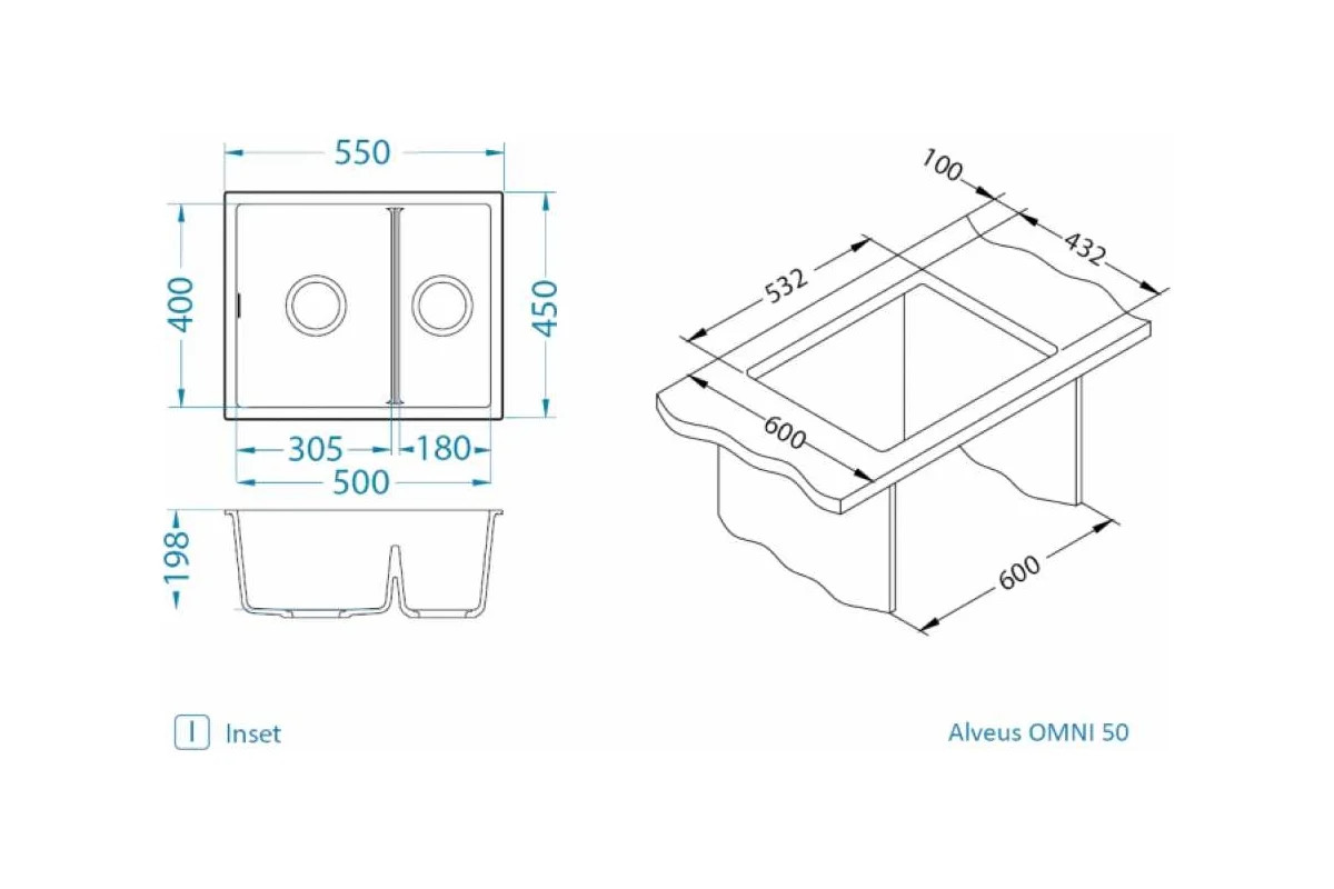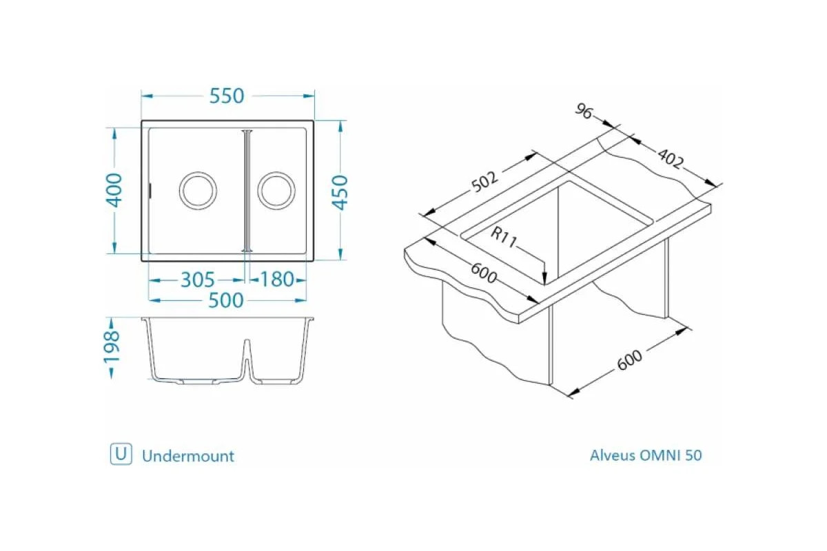 Тип монтажа: Классические врезные кухонные мойки (I) / Чаши для монтажа под столешницу (U)