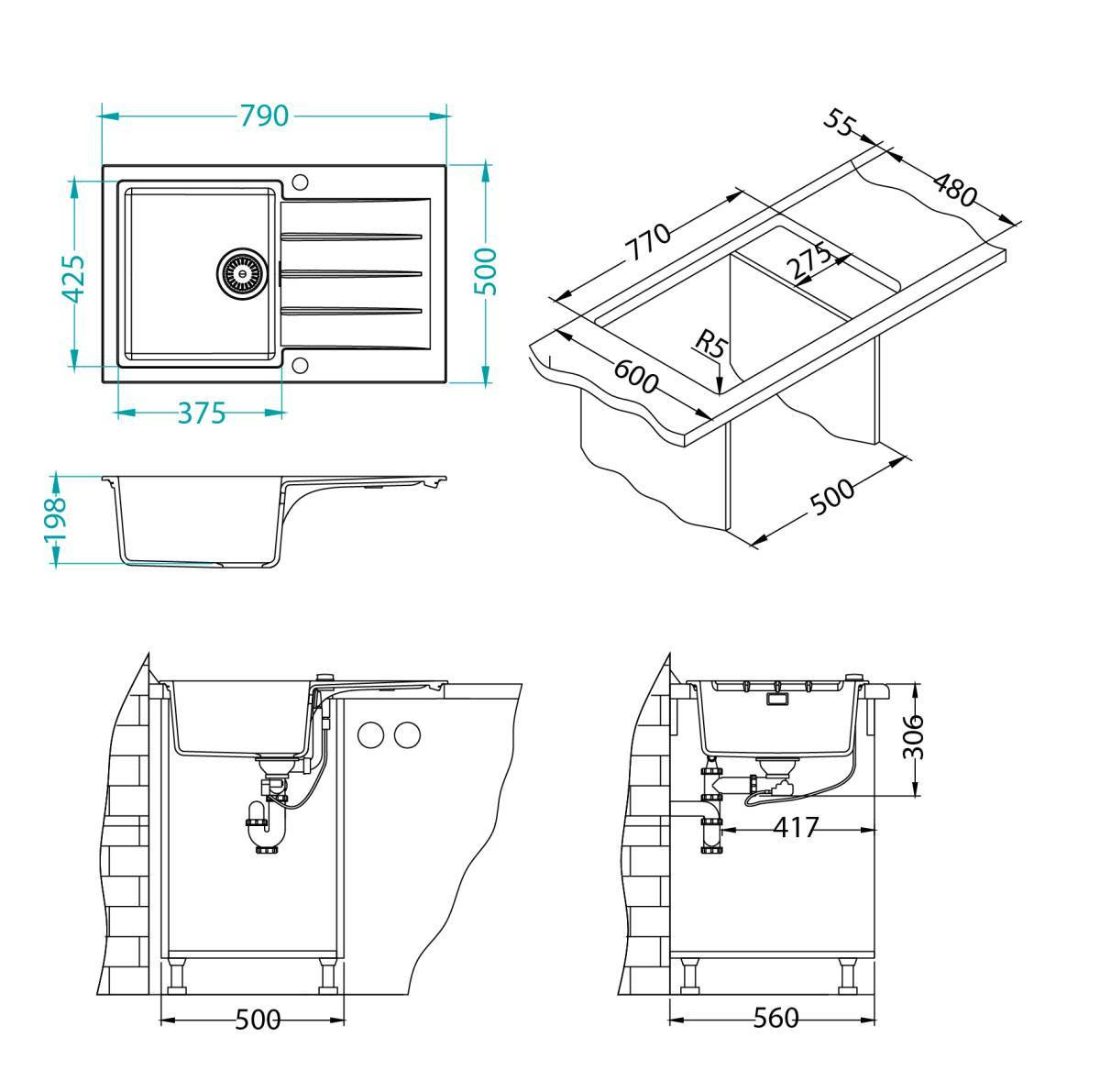 Мойка для кухни ALVEUS GRANITAL CADIT 20 CARBON-G91 1148159 BLACK EDITION