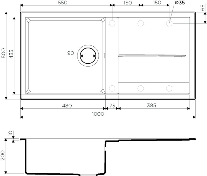 Размер выреза под мойку, мм 480*980
