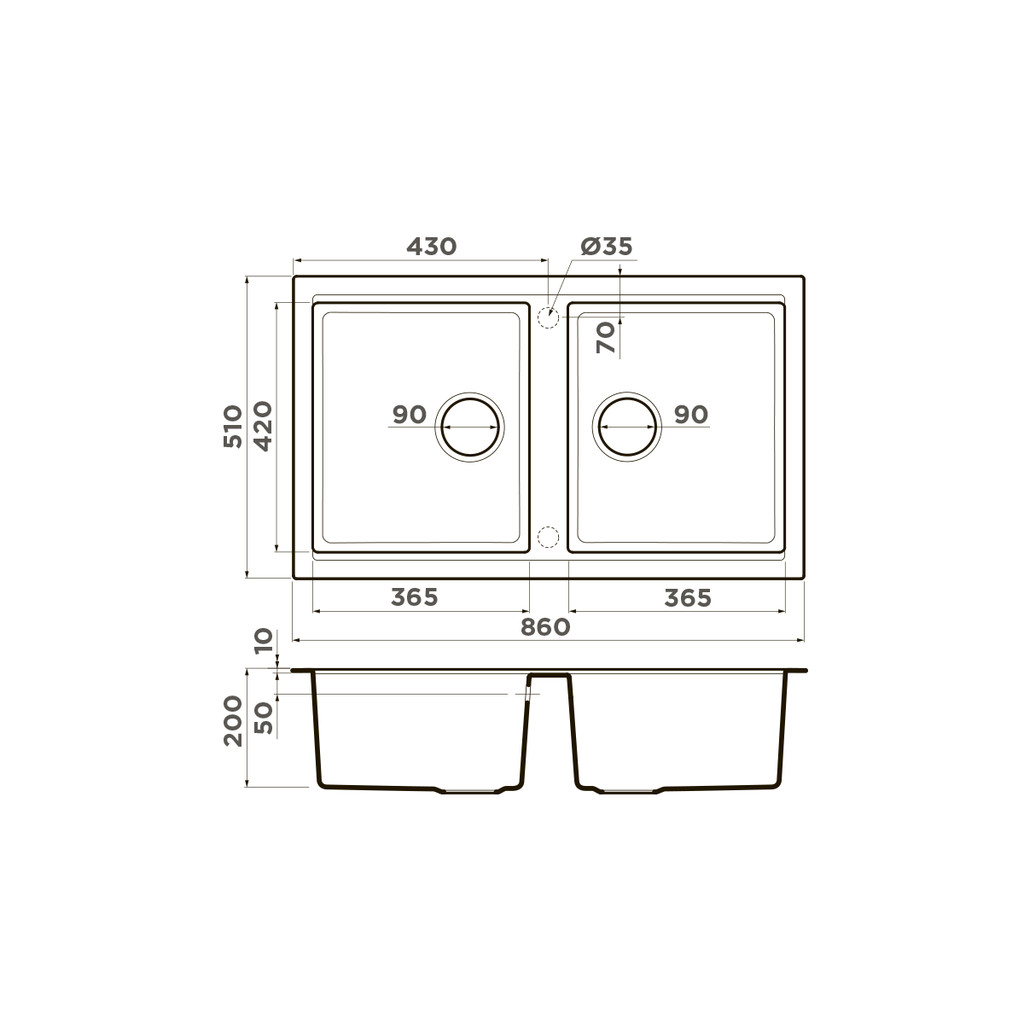 Размер мойки: 860x510