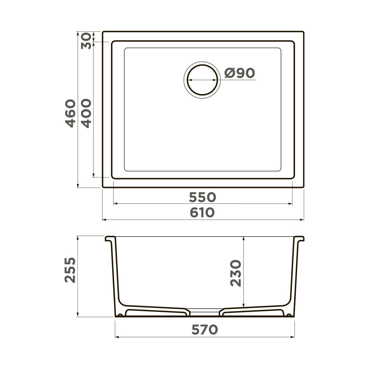 Глубина чаши, мм: 225