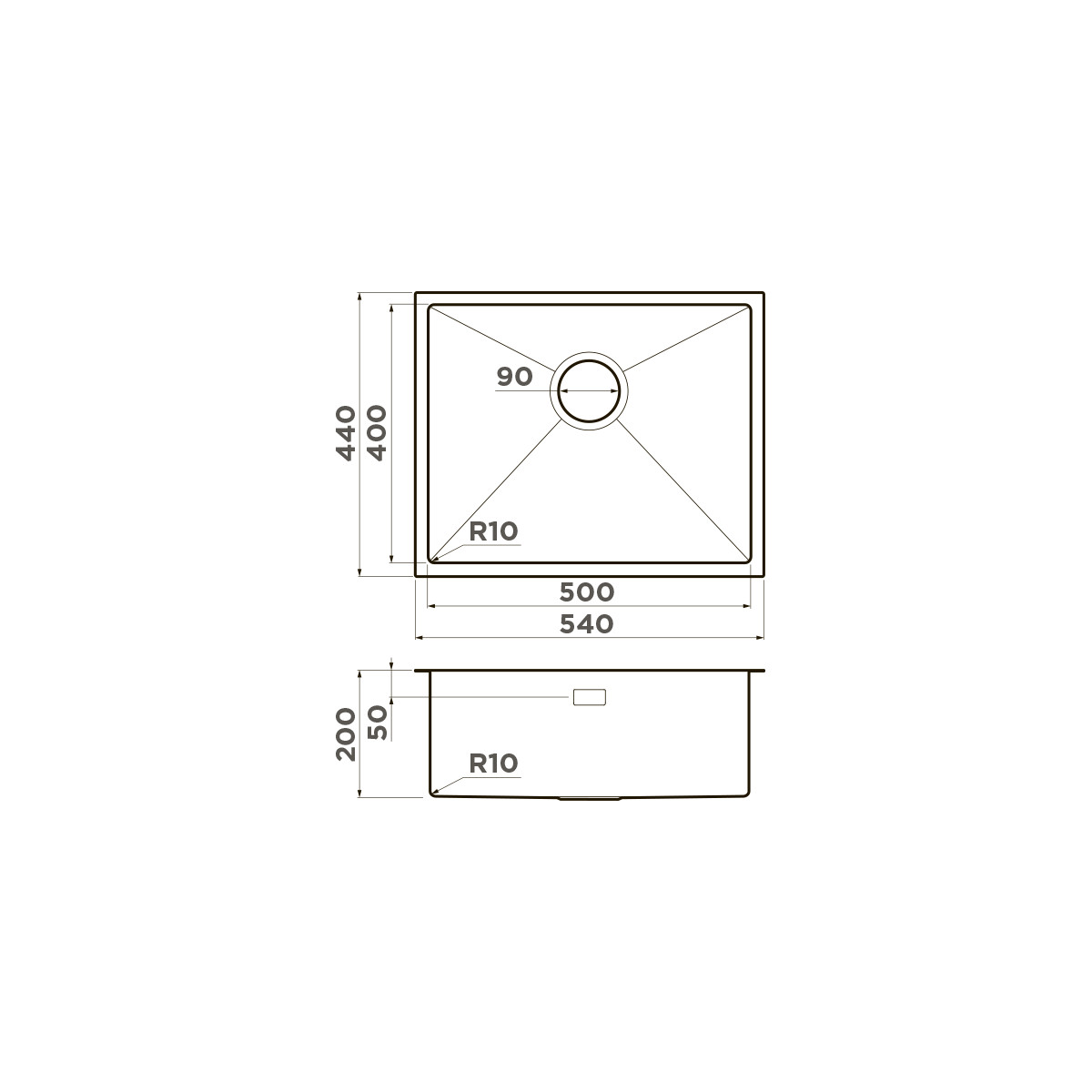 Размеры: ширина 540 мм x длина 440 мм x глубина 200 мм