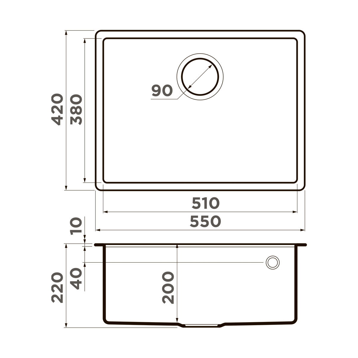 ширина 550 мм x длина 420 мм x глубина 200 мм