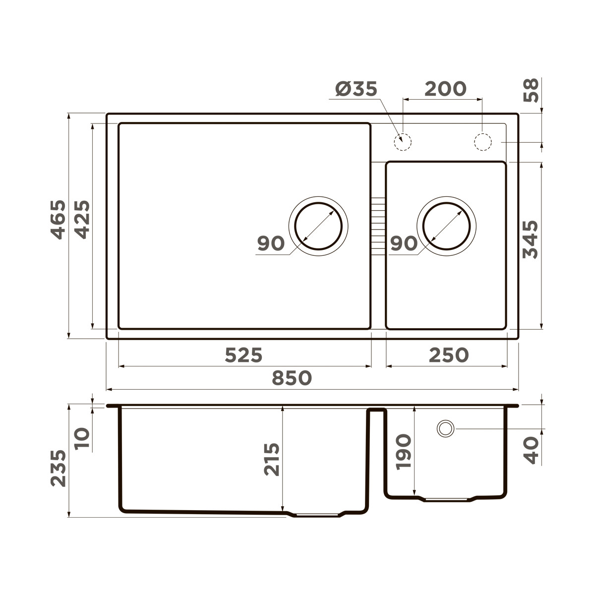 ширина 850 мм x длина 465 мм x глубина 215 мм
