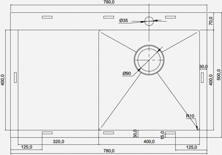Радиус внутренних углов чаши: 10 мм (R=10mm)