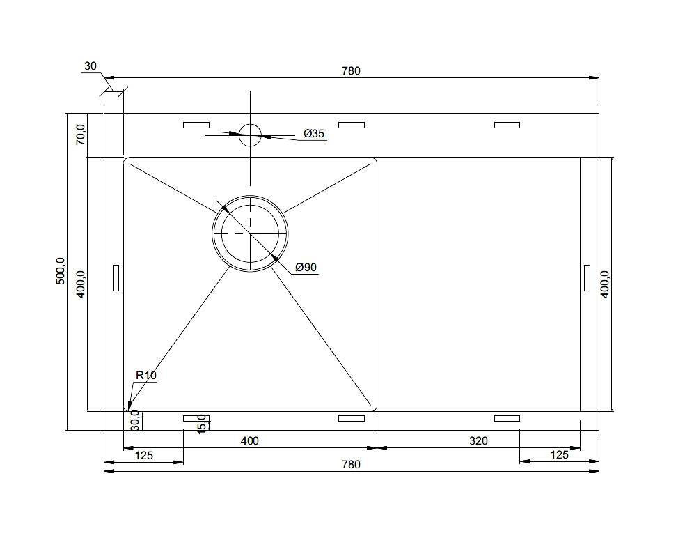 Радиус внутренних углов чаши: 10 мм (R=10mm)