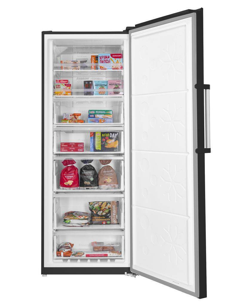 Современный однокамерный морозильник-холодильник высотой 185 см и объемом 380 л.Для повышенного комфорта и удобства загрузки крупных продуктов и больших упаковок с полуфабрикатами созданы 2 специальных ящика Big Box увеличенного объема по 48л.