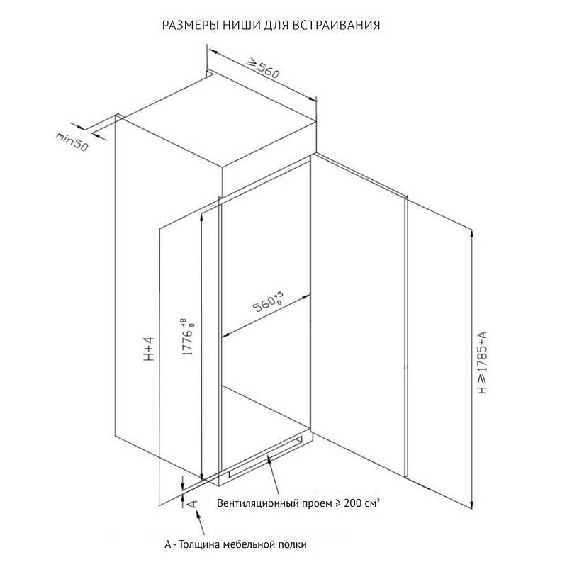 Размеры встраивания (ВхШхГ) (мм): 2085x740x645
