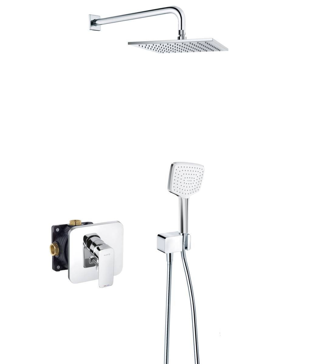Оснащение: Смеситель для ванны и душа, душевой гарнитур, верхний душ, кронштейн