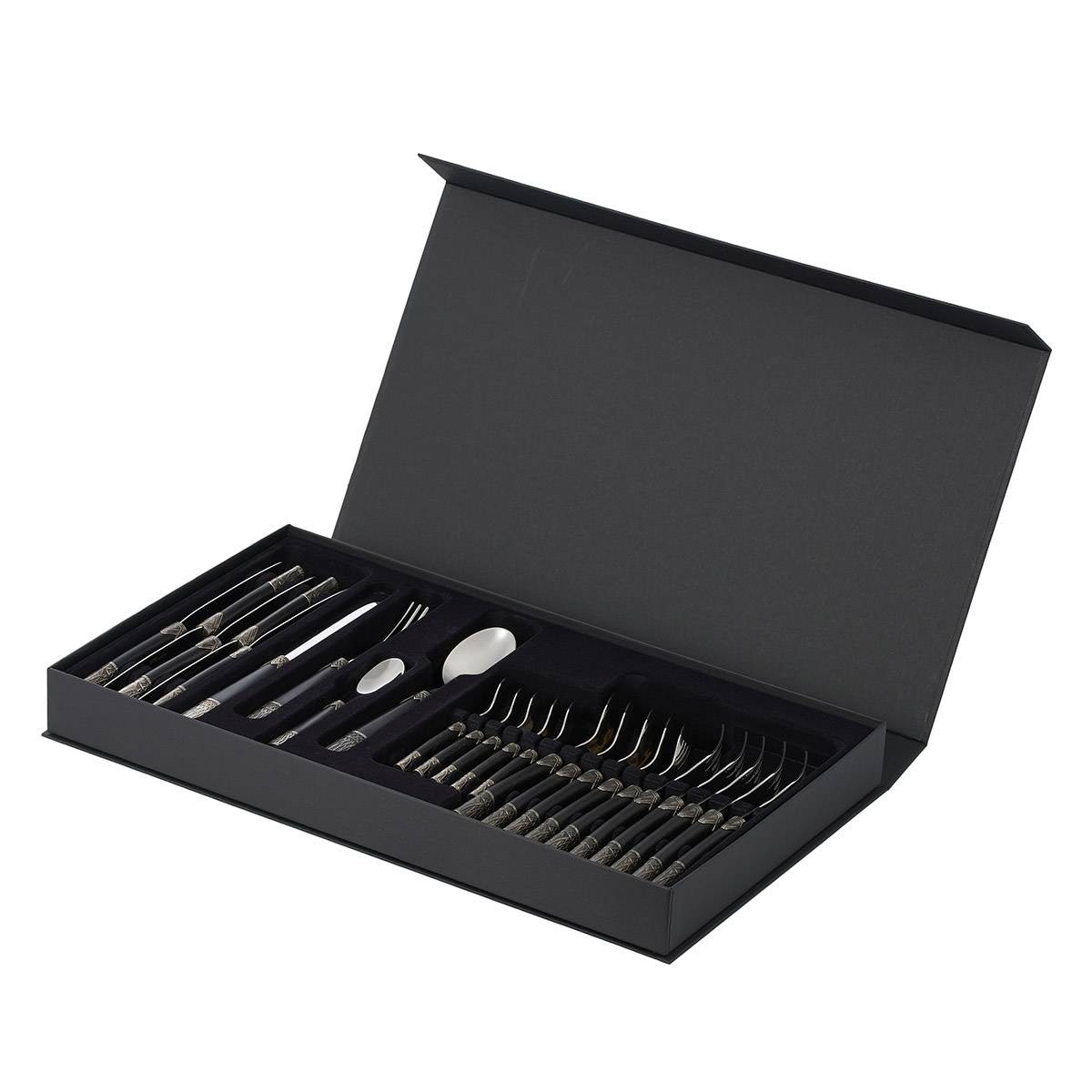 Набор в подарочной упаковке - черная коробка из дерева. Это не только упаковка, но и удобный способ хранения, у каждого прибора своя ячейка. Станет роскошным подарком.