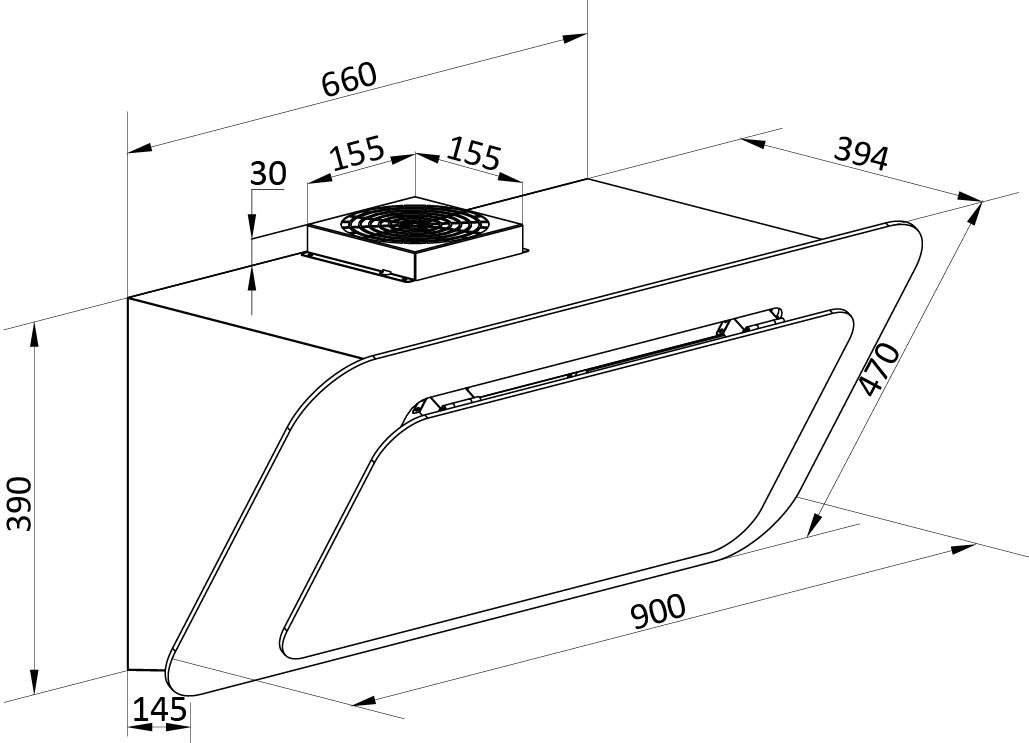 Размеры прибора без воздуховода ВxШxГ (мм): 390x900x394