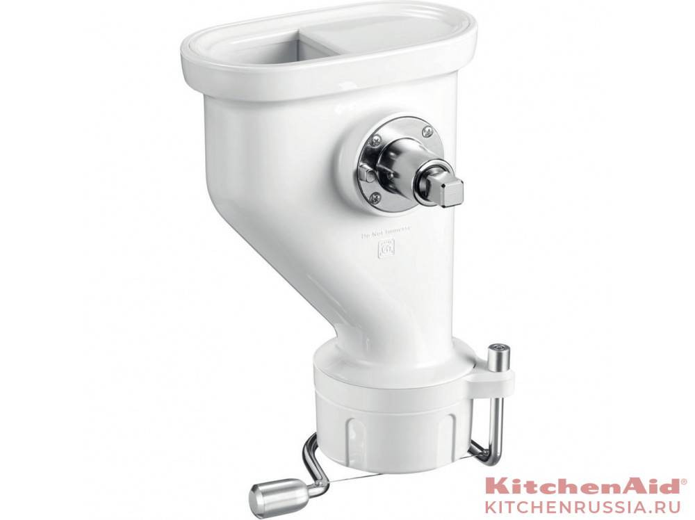 Совместима со всеми настольными миксерами KitchenAid. Для использования насадки, ее следует подключить к дополнительному приводу