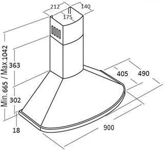 Размеры вытяжки (ВхШхГ), мм: 1042х900х490