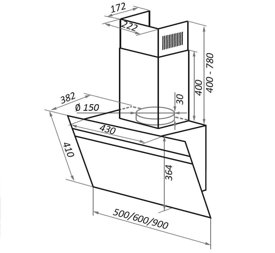 Наклонная вытяжка с настенным креплением