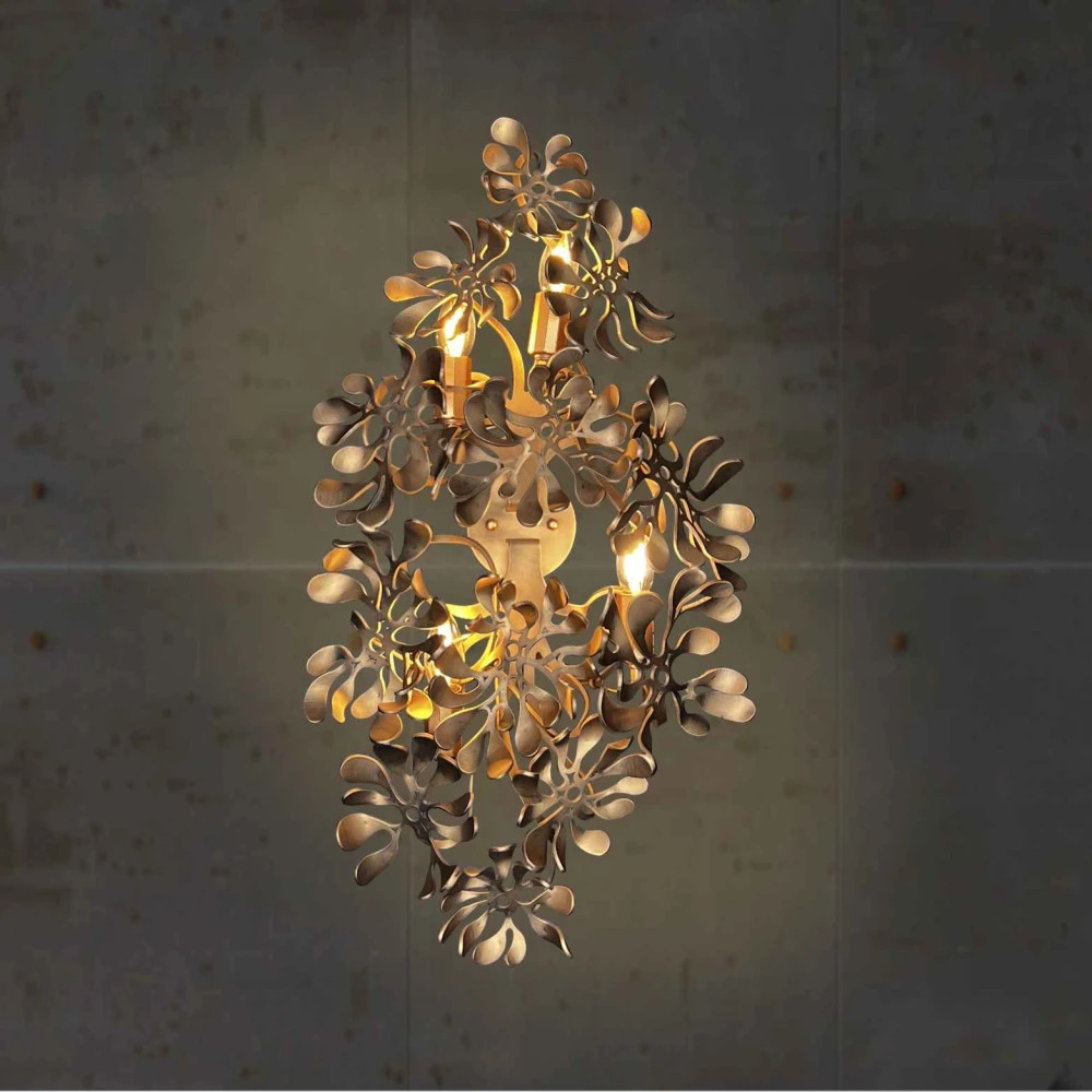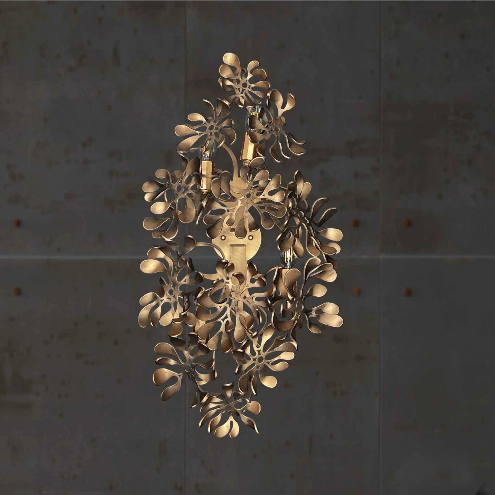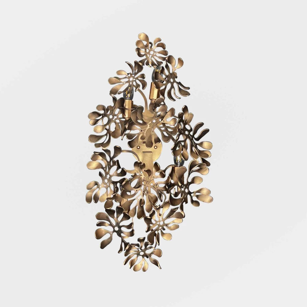 Авторское настенное бра из металла в отделке «состаренная латунь». Форма вдохновлена природными линиями. Ручная обработка подчеркивает фактуру материала и делает светильник уникальным. Мягкий рассеянный свет и выразительный силуэт делают бра акцентом в интерьере — от спальни до холла. Крепление — на монтажную планку. Возможна покраска в любой оттенок по RAL.